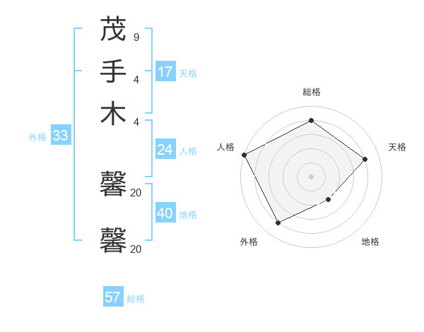 茂手木 馨馨さんの総格は57画の4点