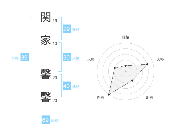 関家 馨馨さんの総格は69画の1点!