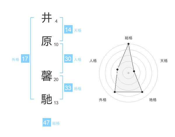 井原 馨馳さんを姓名の画数から五運を鑑定