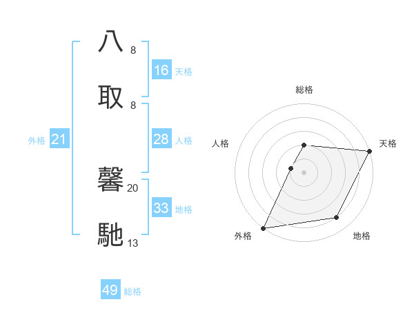 八取 馨馳さんの外格は21画の5点!
