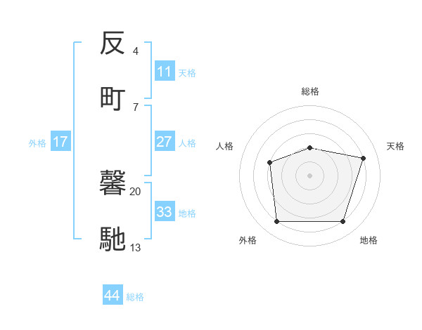反町 馨馳さんを姓名の画数から五運を鑑定