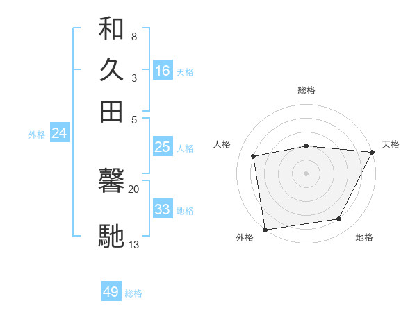和久田 馨馳さんを姓名の画数から五運を鑑定