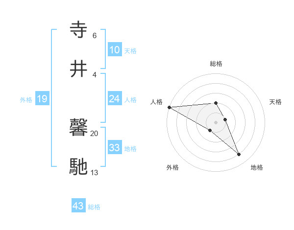 寺井 馨馳さんを姓名の画数から五運を鑑定