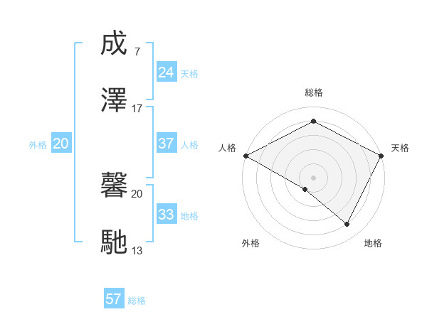 成澤 馨馳さんを姓名の画数から五運を鑑定
