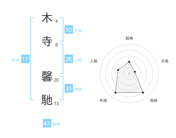 木寺 馨馳さんを姓名の画数から五運を鑑定