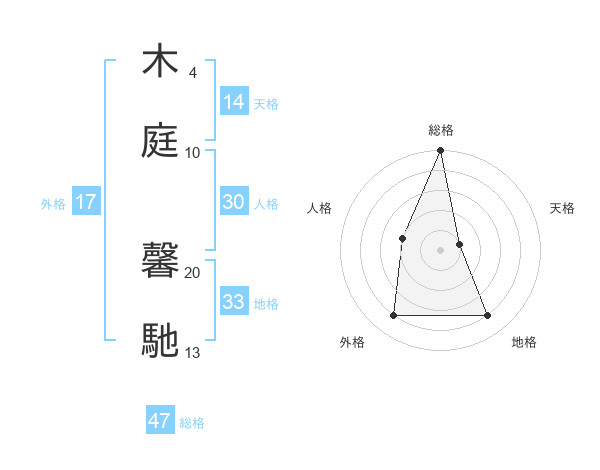 木庭 馨馳さんを姓名の画数から五運を鑑定