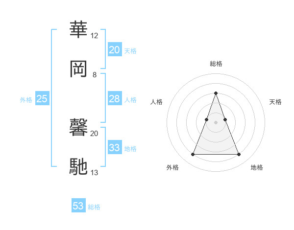華岡 馨馳さんを姓名の画数から五運を鑑定