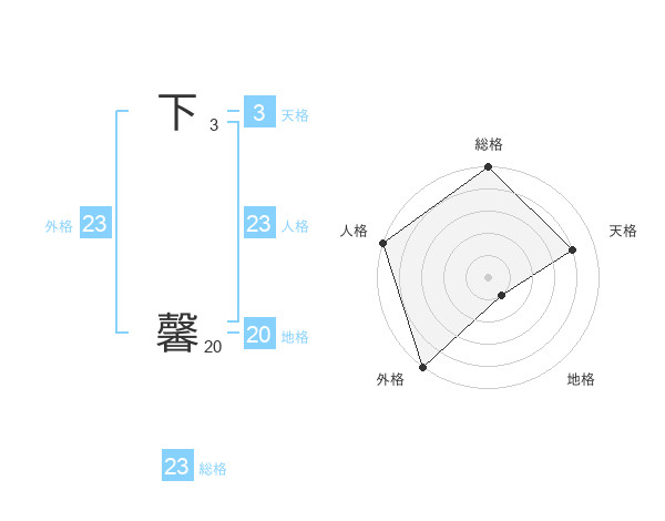 下 馨さんの外格は23画の5点!