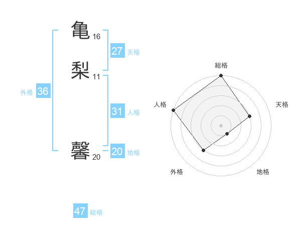 亀梨 馨さんを姓名の画数から五運を鑑定