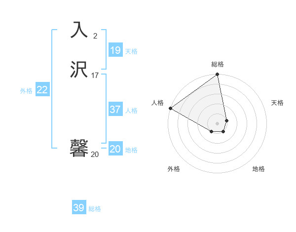 入沢 馨さんの天格は19画の1点!