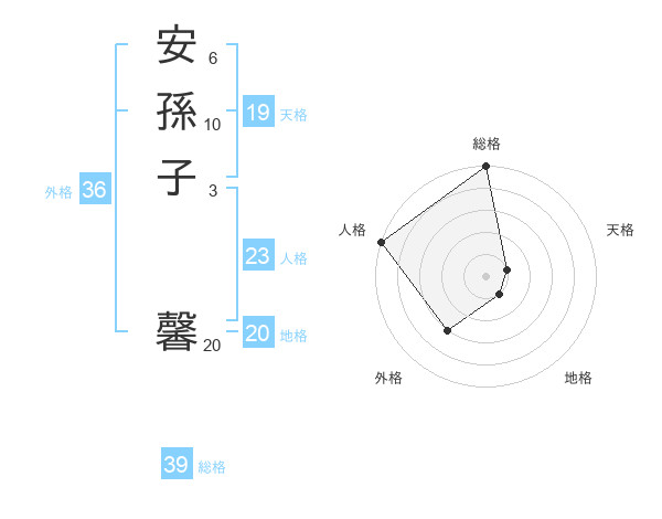 安孫子 馨さんの総格は39画の5点!