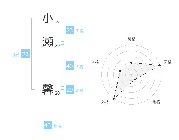 小瀬 馨さんの天格は23画の5点!