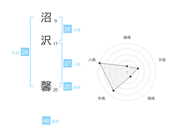 沼沢 馨さんを姓名の画数から五運を鑑定