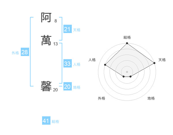 阿萬 馨さんの天格は21画の5点!