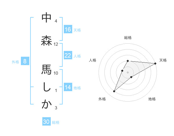 中森 馬しかさんを姓名の画数から五運を鑑定