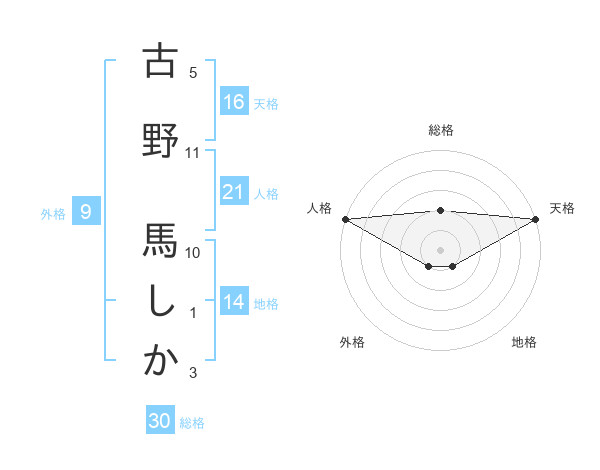 古野 馬しかさんを姓名の画数から五運を鑑定