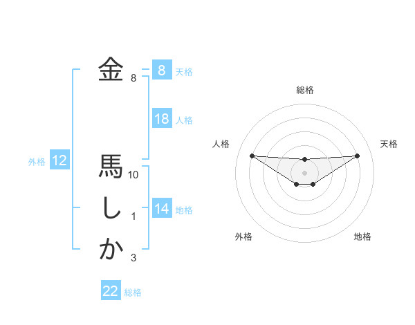 金 馬しかさんの総格は22画の1点!