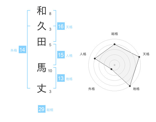 和久田 馬丈さんを姓名の画数から五運を鑑定