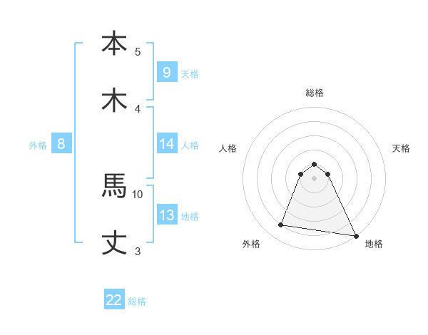 本木 馬丈さんの総格は22画の1点!