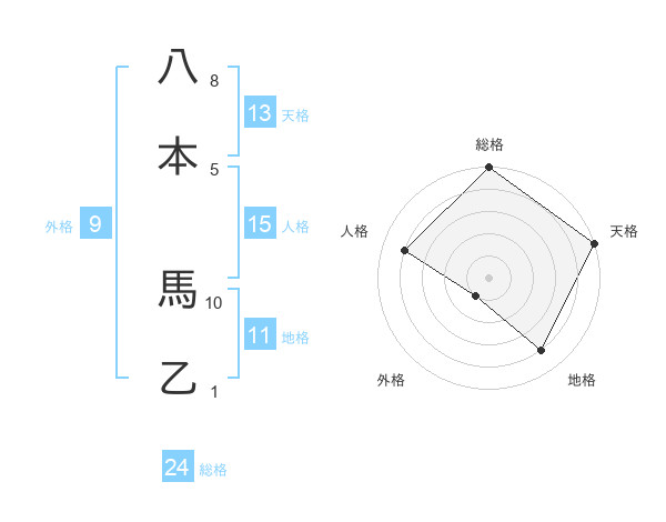 八本 馬乙さんを姓名の画数から五運を鑑定
