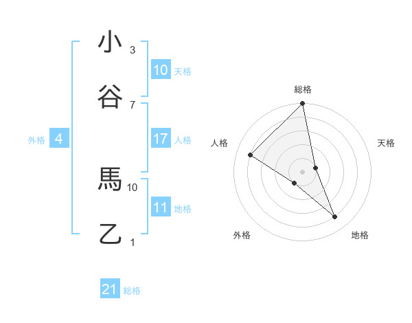 小谷 馬乙さんの総格は21画の5点!