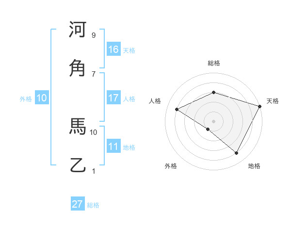 河角 馬乙さんの総格は27画の3点!
