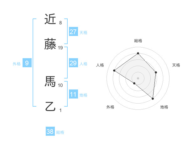 近藤 馬乙さんを姓名の画数から五運を鑑定