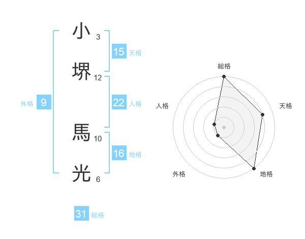 小堺 馬光さんの総格は31画の5点!
