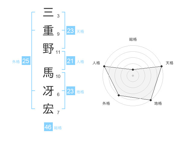 三重野 馬冴宏さんを姓名の画数から五運を鑑定