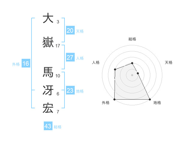 大嶽 馬冴宏さんを姓名の画数から五運を鑑定
