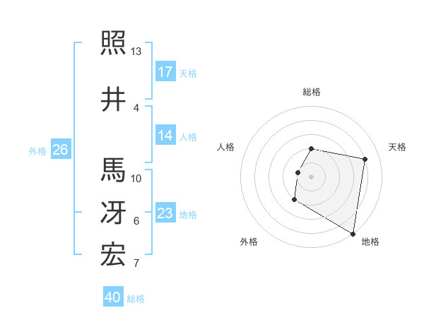 照井 馬冴宏さんを姓名の画数から五運を鑑定