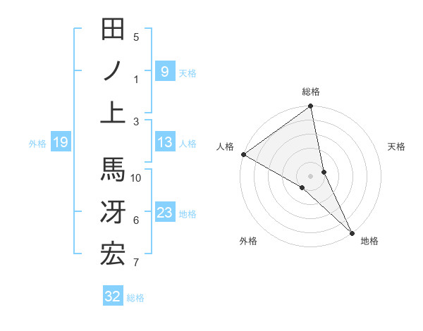 田ノ上 馬冴宏さんの総格は32画の5点!