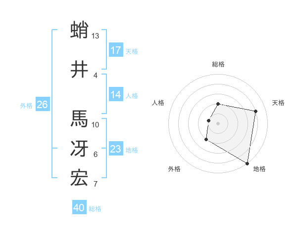 蛸井 馬冴宏さんの天格は17画の4点!