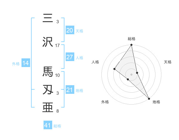 三沢 馬刄亜さんを姓名の画数から五運を鑑定