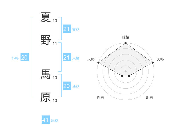 夏野 馬原さんの天格は21画の5点!