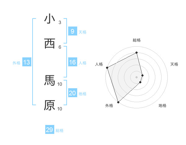 小西 馬原さんの総格は29画の4点!