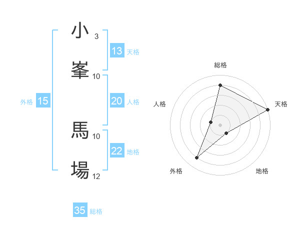 小峯 馬場さんを姓名の画数から五運を鑑定