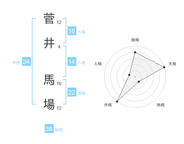 菅井 馬場さんの総格は38画の4点!
