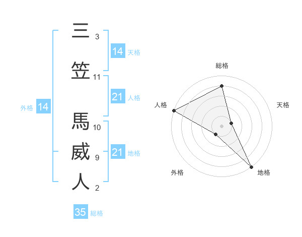 三笠 馬威人さんの地格は21画の5点!