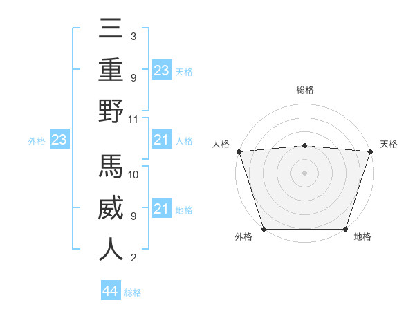 三重野 馬威人さんの天格は23画の5点!