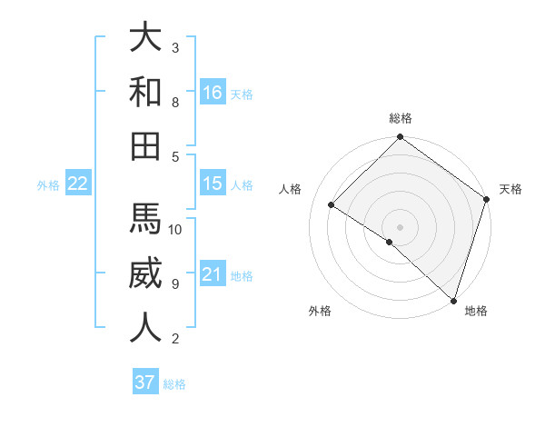 大和田 馬威人さんの総格は37画の5点!