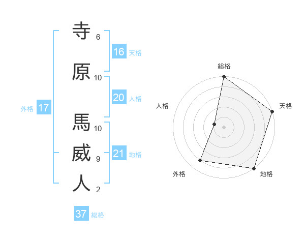 寺原 馬威人さんの総格は37画の5点!