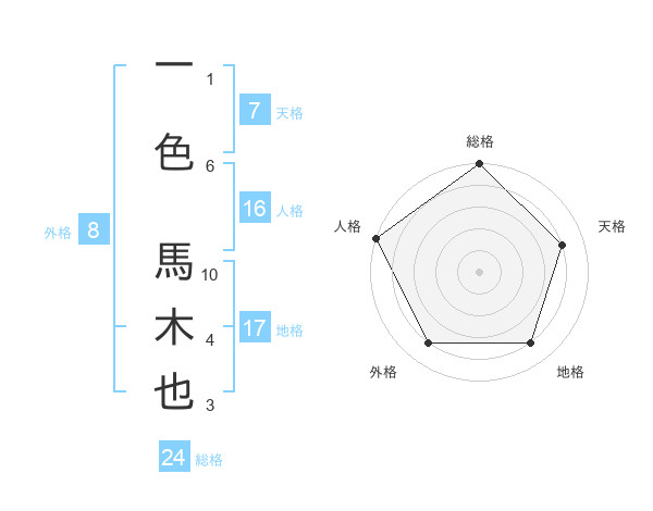 一色 馬木也さんを姓名の画数から五運を鑑定
