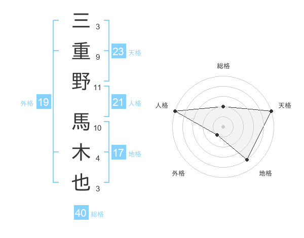 三重野 馬木也さんを姓名の画数から五運を鑑定