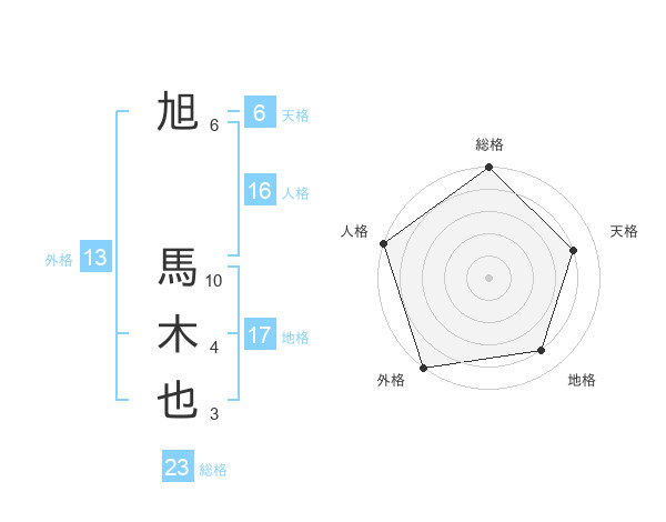 旭 馬木也さんの外格は13画の5点!