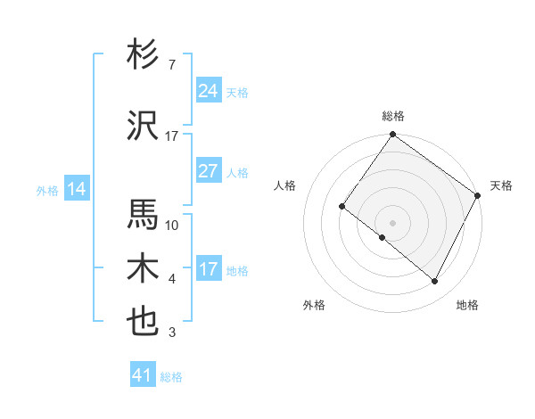杉沢 馬木也さんを姓名の画数から五運を鑑定
