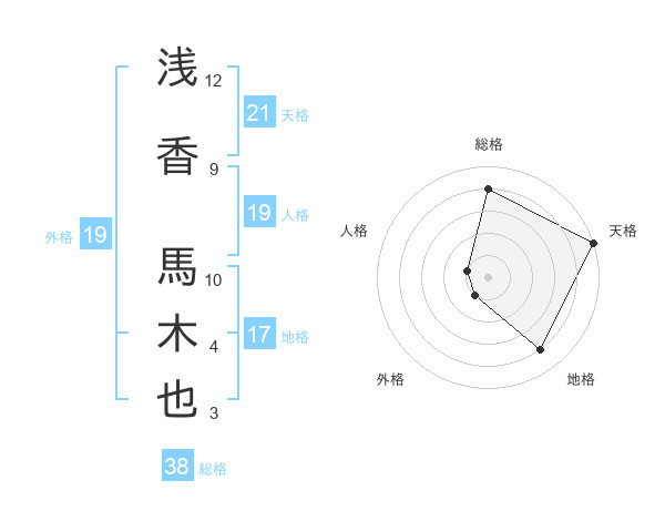 浅香 馬木也さんを姓名の画数から五運を鑑定