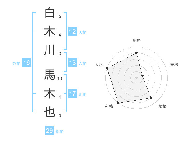 白木川 馬木也さんの総格は29画の4点!