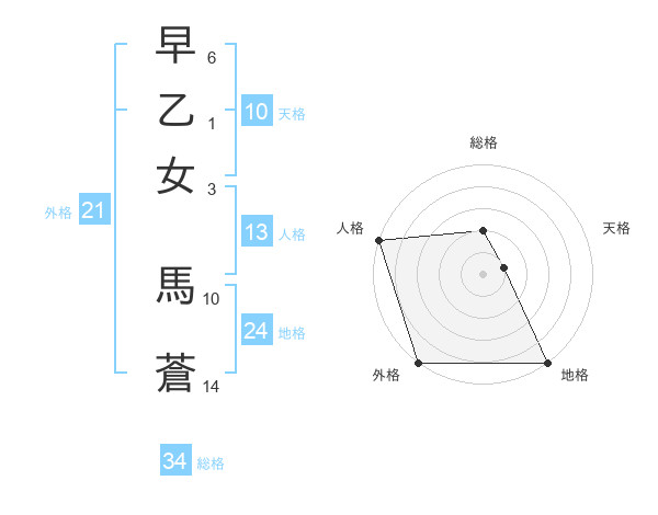 早乙女 馬蒼さんを姓名の画数から五運を鑑定