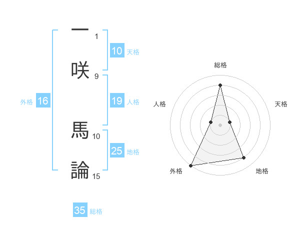 一咲 馬論さんを姓名の画数から五運を鑑定